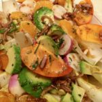 WINTER SALAD – – For the vinaigrette:: soy sauce, red wine vinegar, Dijon mustard, shallot (sliced paper-thin), extra-virgin olive oil (60ml), fresh rosemary leaves — optional, For the salad:: medium Belgian endives (rinsed, trimmed, leaves separated), medium clementine (peeled, sections separated), medium persimmon (thinly sliced), medium avocado (cutquarters and cut on the diagonal), baby turnips (trimmed, cut into thin rounds), Fleur de sel, In a small bowl, whisk together the soy sauce and the vinegar. Whisk in the mustard, then the shallot. When they are combined, whisk in the oil. Taste for seasoning.; Mince the rosemary, and whisk it into the vinaigrette.; Arrange all of the ingredients in a large, shallow plate. Make sure all the colors are showing. Drizzle with the vinaigrette, then sprinkle with fleur de sel. Serve immediately.; – [/wpurp-searchable-recipe]