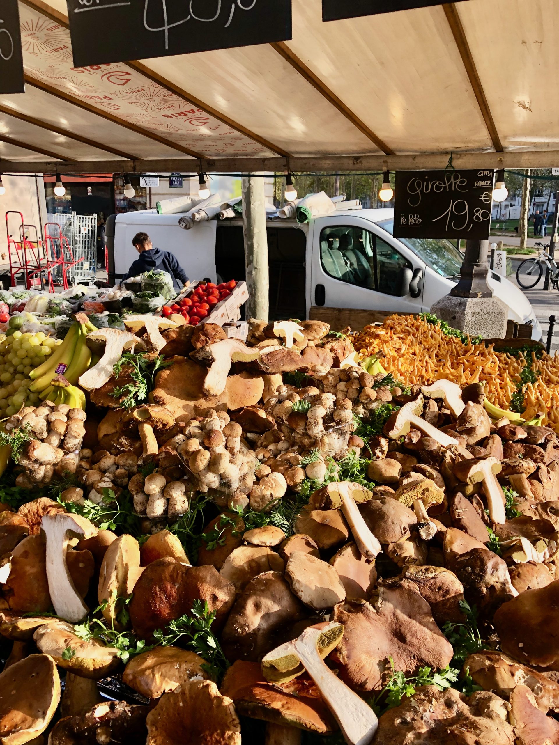 French mushrooms embody the feel of autumn elegance.  Collected fresh daily from the woods, or carefully coaxed from loam in ancient caves, you will touch mushrooms of every variety, turning them into savory delicacies.